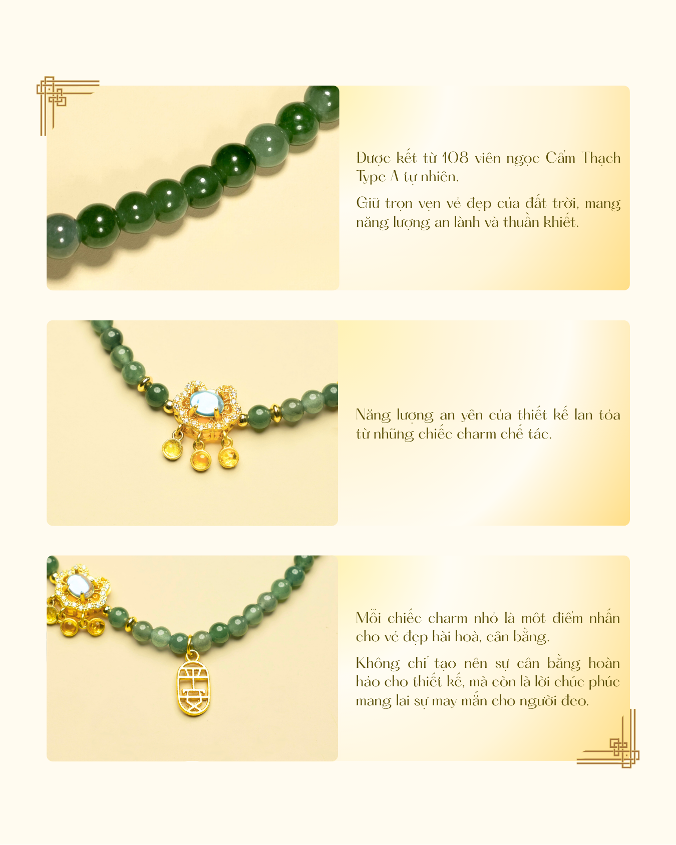 Chất liệu: Ngọc Cẩm Thạch tự nhiên 100%, được tuyển chọn kỹ lưỡng.